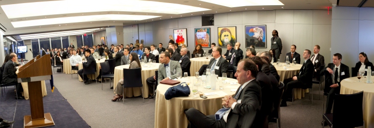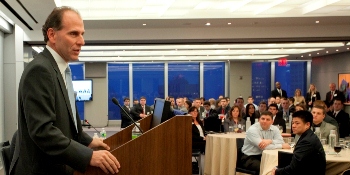 Twenty-six alumni and 97 students joined faculty and staff at a Finance Forum sponsored by JPMorgan at their NYC headquarters in March, 2011. Hosted by Guy Chiarello ’81, JPM’s CIO, the program included a panel discussion and networking reception.