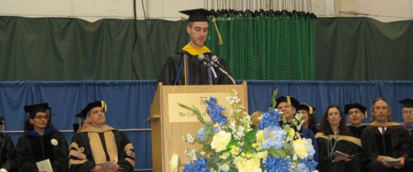 Above, marketing major Daniel Zane addressed the senior class, before the presentation of awards and diplomas by the faculty of each respective deaprtment.