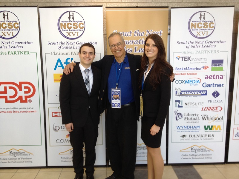 On March 28-29, two TCNJ Business juniors — Phil Nichilo (Interdisciplinary Business with Professional Selling Minor) and Kristen Speigel (Economics) — competed at the National Collegiate Sales Competition sponsored by Kennesaw University in Kennesaw Georgia. Contestants participated in role-playing exercises selling ADP human resources and payroll solutions to recruiters acting as buyers in the tech firm selling scenario. Phil and Kristen were among the 145 contestants representing 65 undergraduate schools. Each school selected the best two of their sales students to compete, with some schools having over 300 sales students to choose from. There are only 70 U.S. schools with sales programs of the more than 4000 US universities. TCNJ ranked 14th of the 65 schools competing, ahead of larger universities such as U. of Georgia, U. of Texas, Florida State, James Madison, U. of Arizona, Virginia Tech, William Patterson, Kansas State, Clemson, and Indiana. Kristen placed 13th overall, after placing first in her role-play room in the wild card, then placing first in her room in the quarter-final round moving on to the 16 contestants in the semifinal round. Phil came in 2nd place in his wild card room (ahead of Ohio University, Aurora University, and Widener University) in the wild and 85th overall. Phil and Kristen were selected to compete because Phil came in first place in the Pi Sigma Epsilon regional sales competition, while Kristen came in 2nd place.