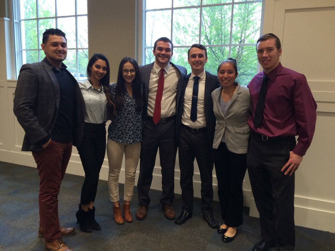 This year’s Senators to the School of Business are (l-r): Juan Giraldo, Priya Soni, Nicole Herrmann, Michael O’Connor, Austin Pelliciari, Aury Cifuentes, and Todd Kutcher. Not Pictured: Jacqueline Gilligan and Aleksander Soriano.