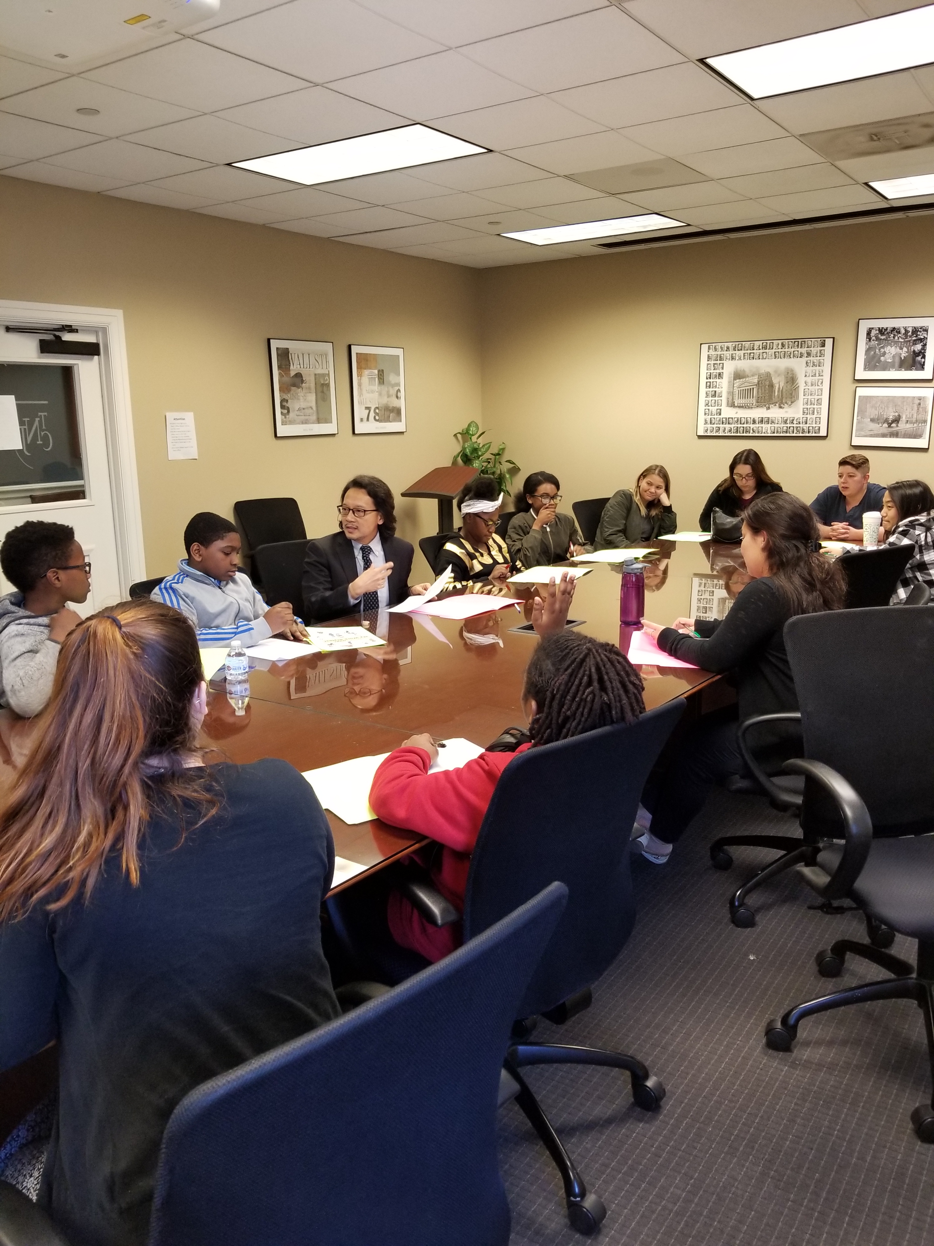 On Wednesday, April 18, Delta Sigma Pi hosted students from Rivera Middle School in Trenton, NJ as part of the Business Matters Youth Entrepreneurship Program. The program aims to develop financial literacy and money management skills in middle school students. Throughout the program, students have learned about marketing principles, loan agreements, real estate, and entrepreneurship. At the end of the program, the students will have developed a business plan and will present it during a Market Fair Day.