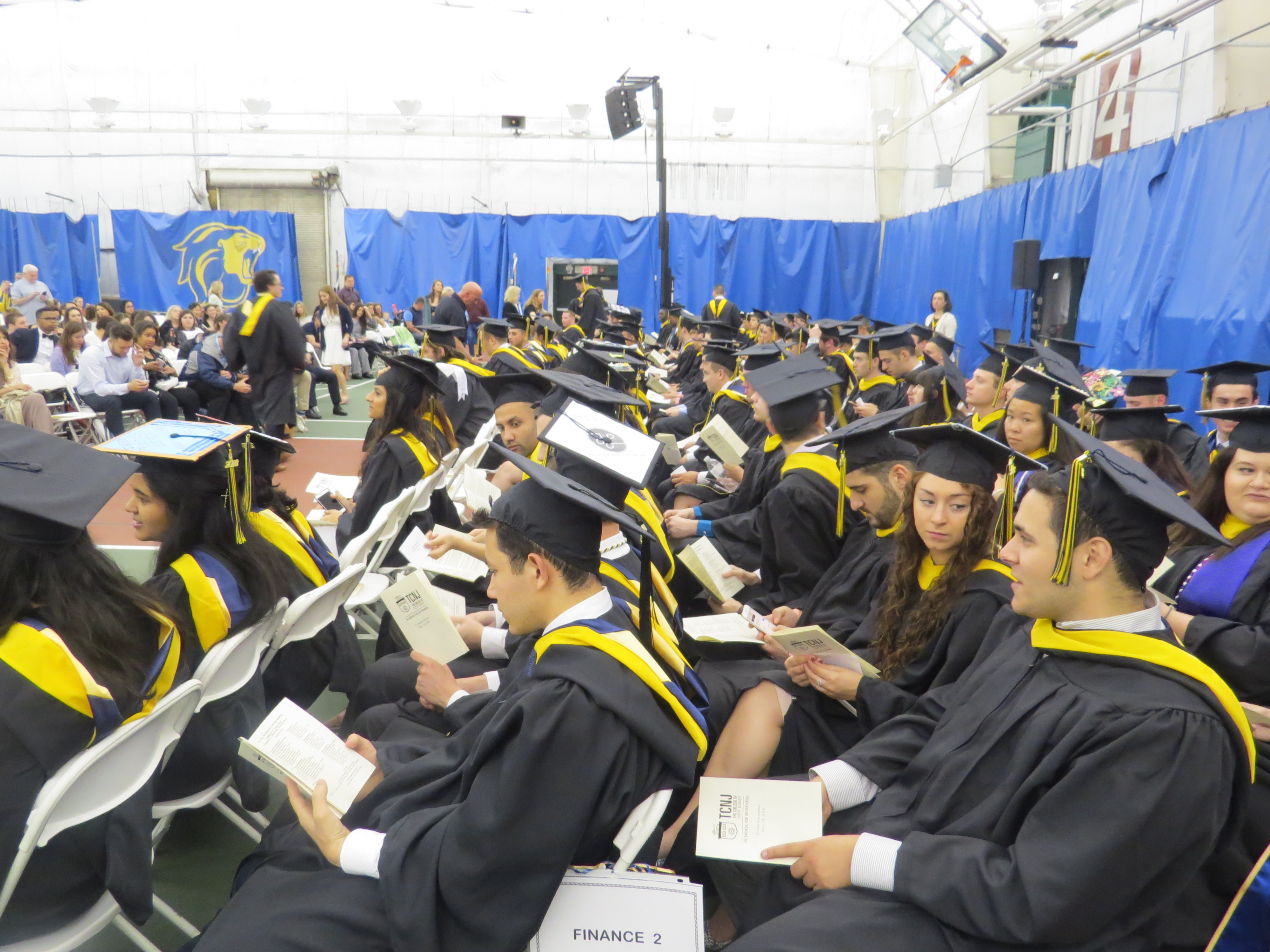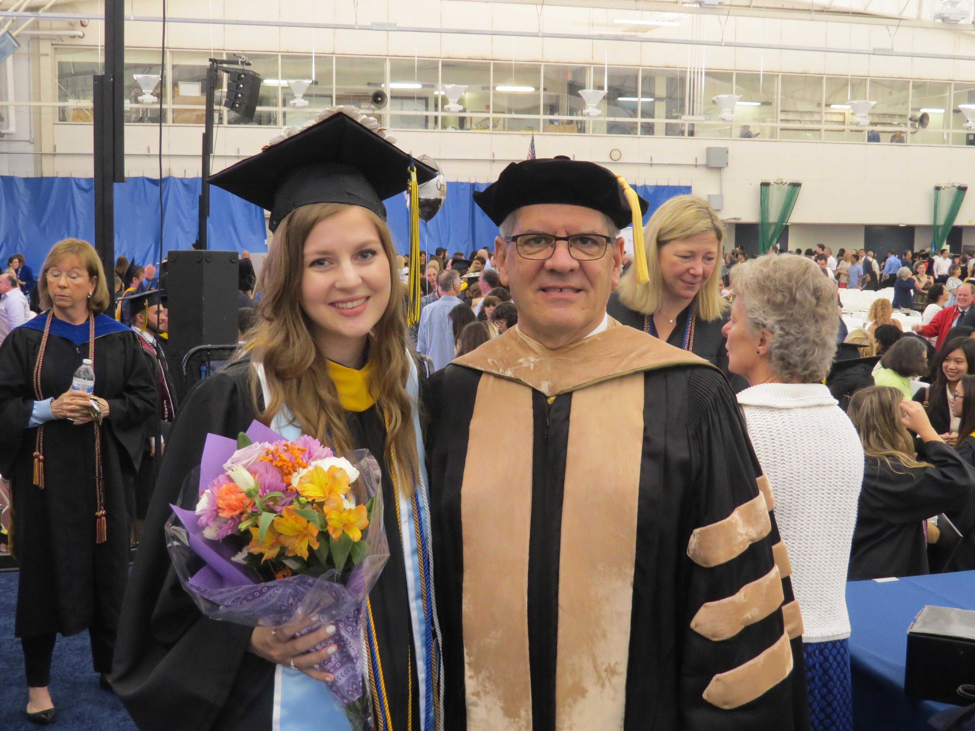 Join us in congratulating over 300 graduates of the School of Business! Economics major Kayla Bertolino carried the School of Business gonfalon into the College-wide Commencement Ceremony on Thursday, May 17.