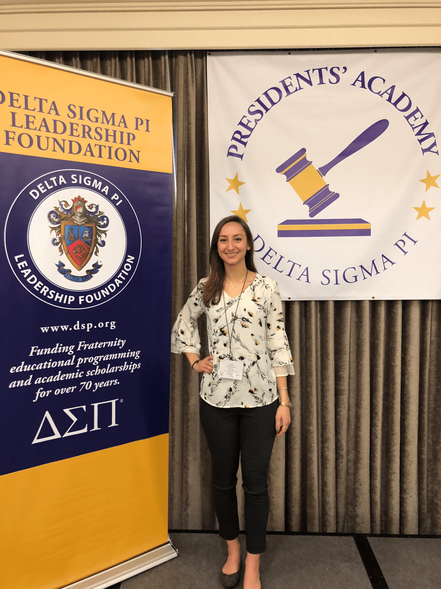 Sarah Armstrong, sophomore marketing major, traveled to St. Louis during the winter break to attend the inaugural Presidents’ Academy hosted by Delta Sigma Pi, a national business fraternity. The event served as a training for chapter presidents to develop leadership skills.