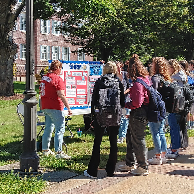 As part of the third week of our Business Orientation Seminar course, all 280+ first-year students took part in a networking fair today that featured student representatives from each School of Business academic department and student organizations. Students in BUS 099 were encouraged to meet at least five new classmates who were not in their specific classrooms for BUS 099. The event was full of synergy and welcoming to our first-year populations in the School of Business.