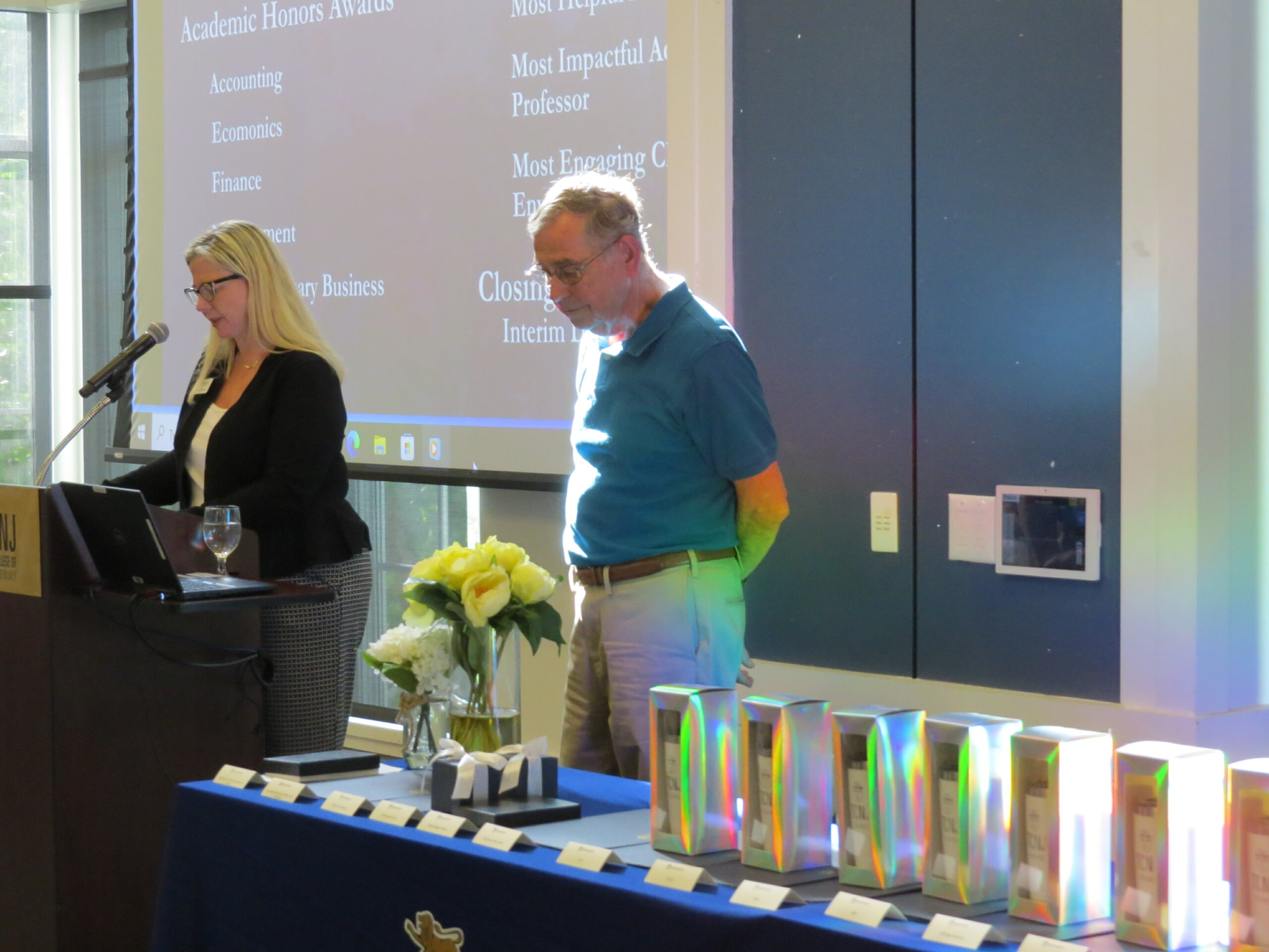 Last evening, the School of Business held the 2024 Senior Awards Ceremony. Each year the faculty of the School of Business recognizes the academic and co-curricular achievements of our graduating Seniors. In her welcome address, Interim Dean Dieterich said, “Today, we gather to honor those who have exemplified remarkable commitment to their studies and have demonstrated exceptional achievements in their academic endeavors. I’m thrilled to celebrate with all of you today and thank you for the ways you have made a difference. You went above and beyond, and we are so proud of you.”