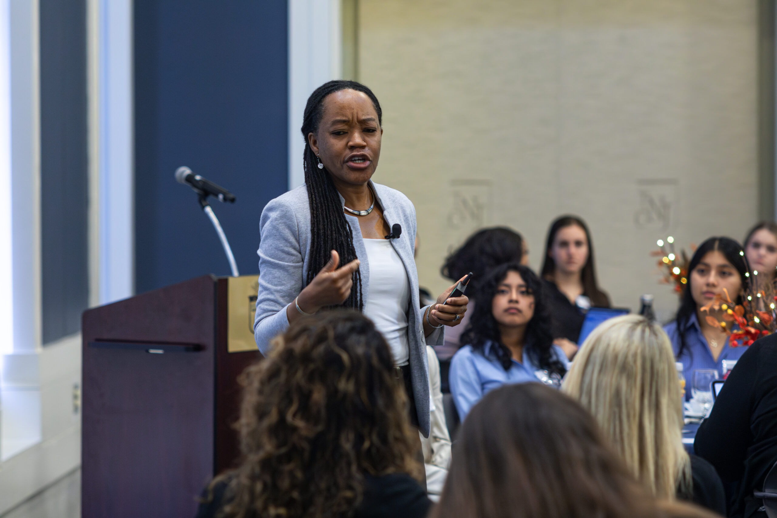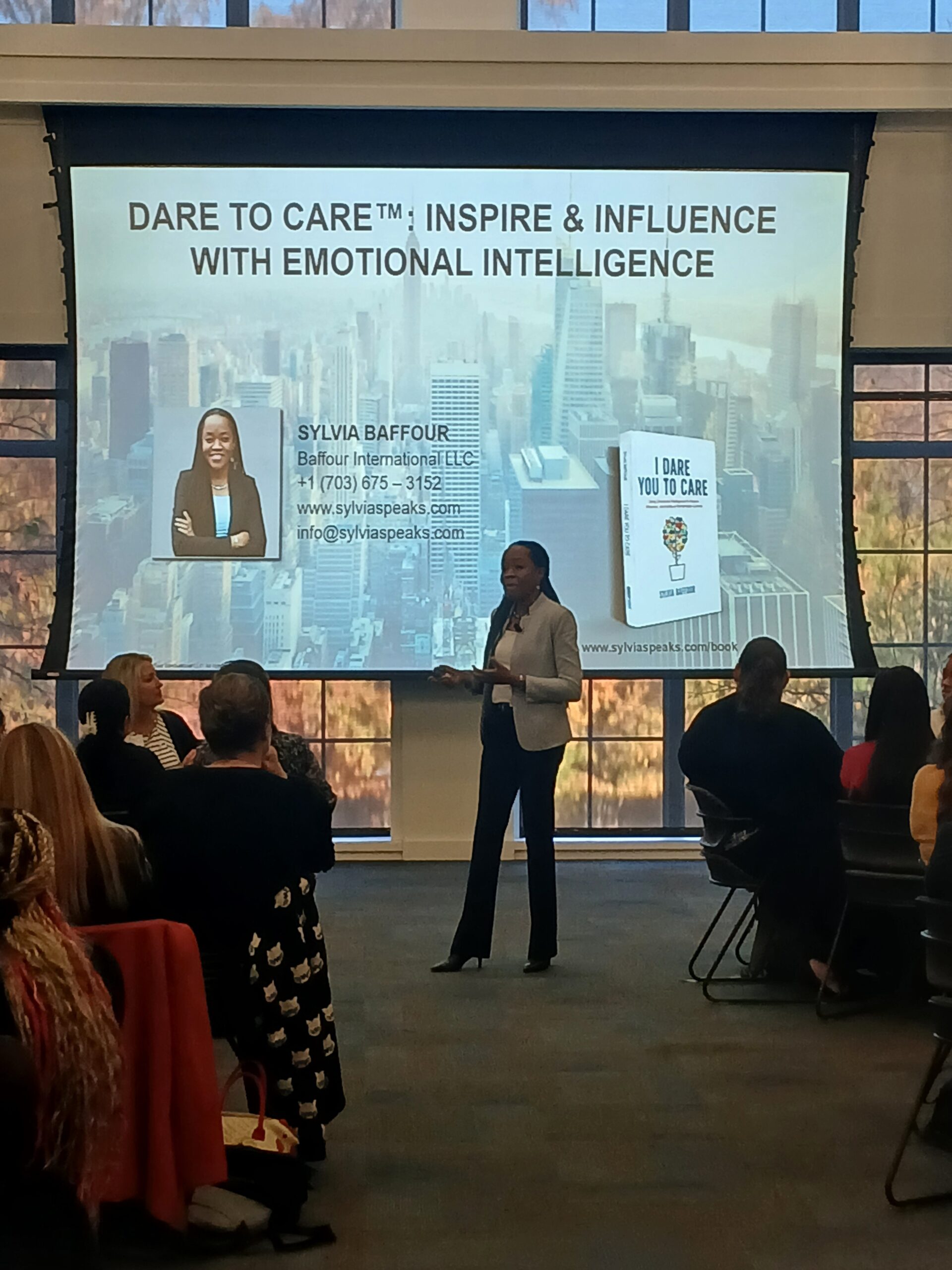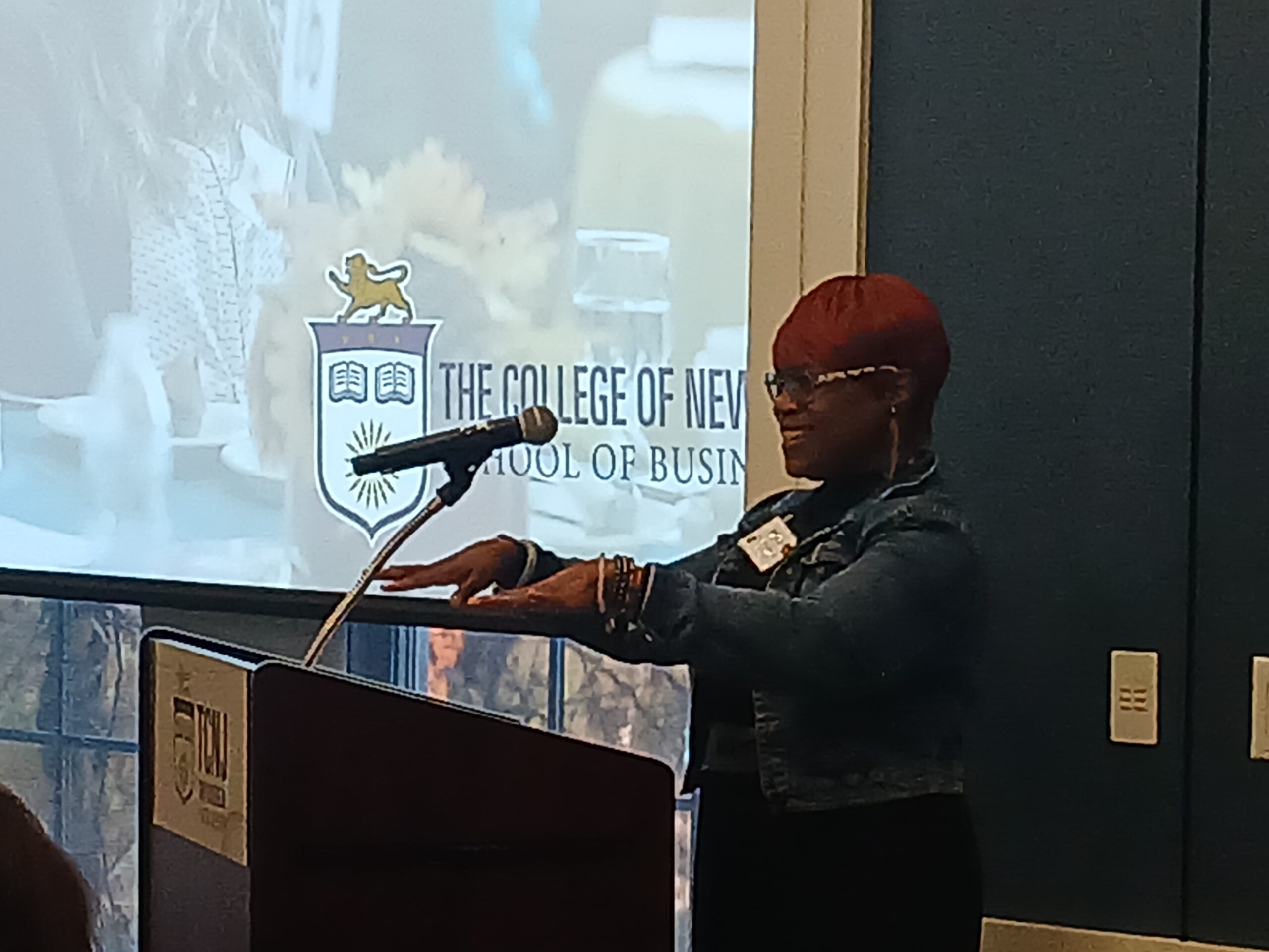 On October 30, 2024, The College of New Jersey School of Business hosted its 14th Annual Women’s Leadership Summit. This year’s keynote speaker was Sylvia Baffour, a renowned speaker, emotional intelligence expert, and author of “I Dare You to Care – Using Emotional Intelligence to Inspire, Influence, and Achieve Remarkable Growth.” Sylvia presented the 5 Strategies of Emotional Intelligence to a sold-out crowd, sharing personal stories along the way, such as how she met Maya Angelou by chance and spent the next 12 years having Thanksgiving Dinner with her and her family.