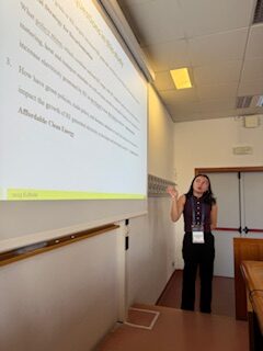 On June 24, 2025, at the European Academy of Management (EURAM) Conference in Florence, Italy, Professor Linghui Tang and senior Economics major Kate Siedelhofer presented their co-authored research paper, “From Target to Implementation: A Systematic Evaluation of Green Policies and Renewable Energy in Electricity Generation.”